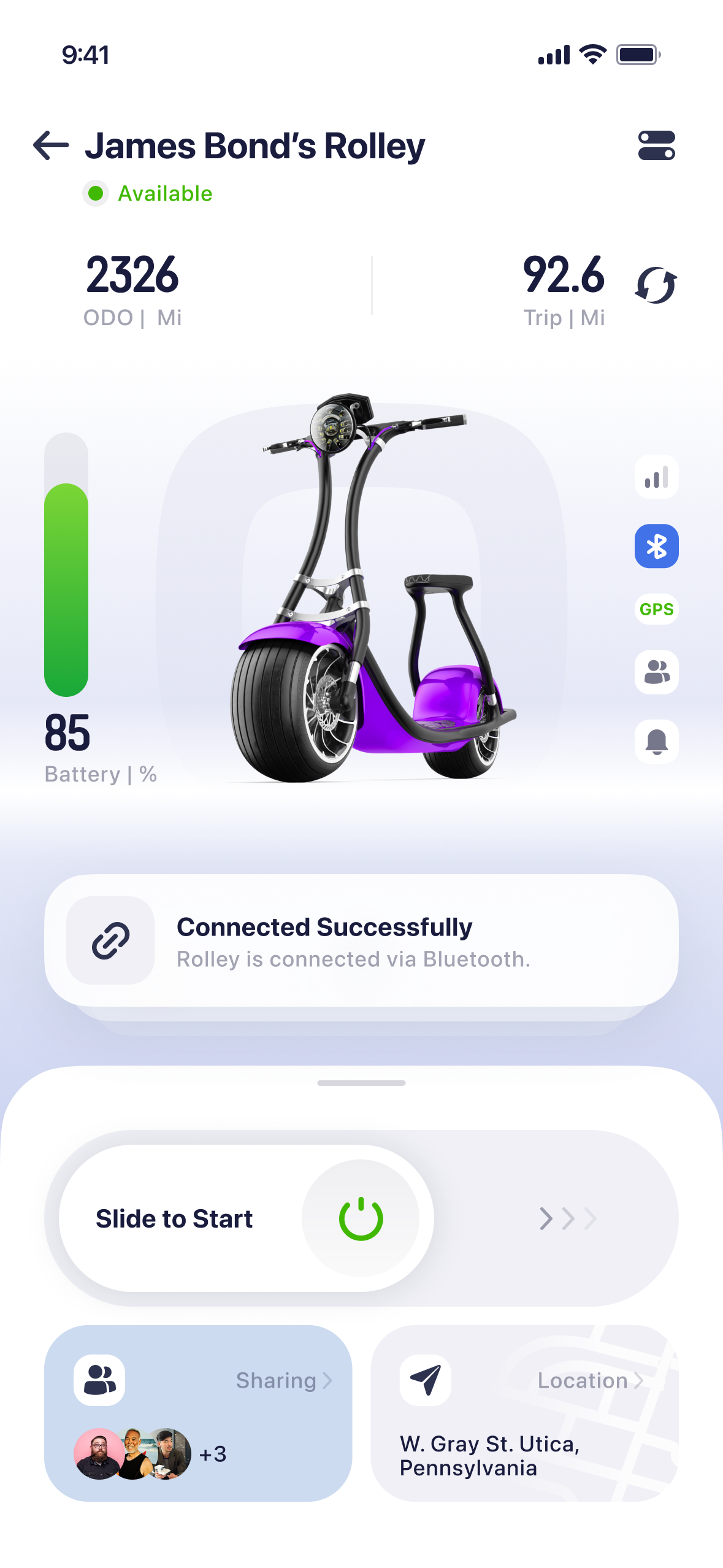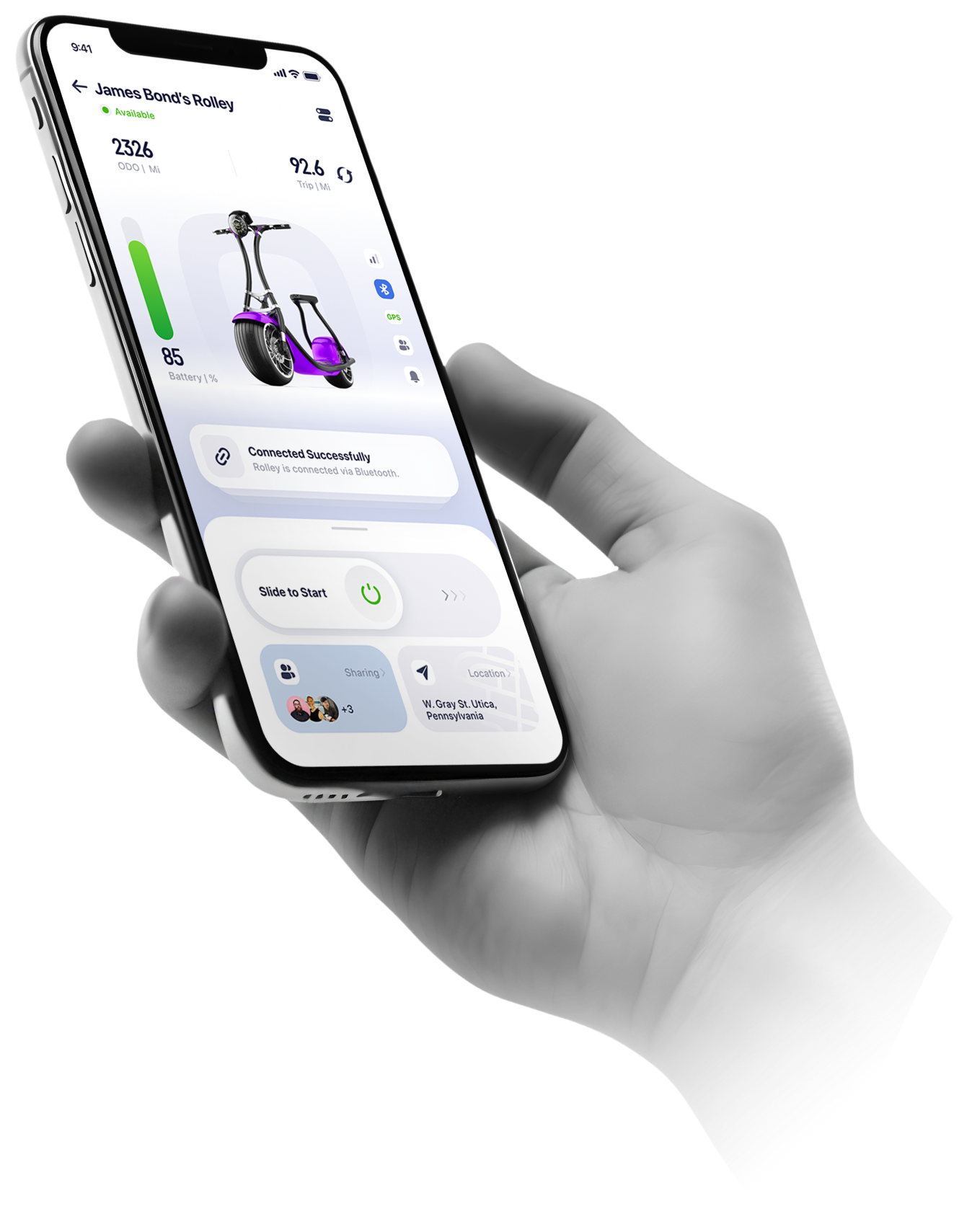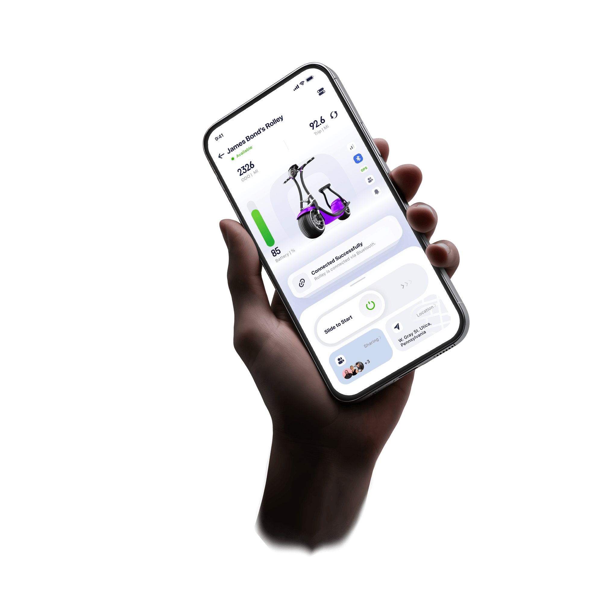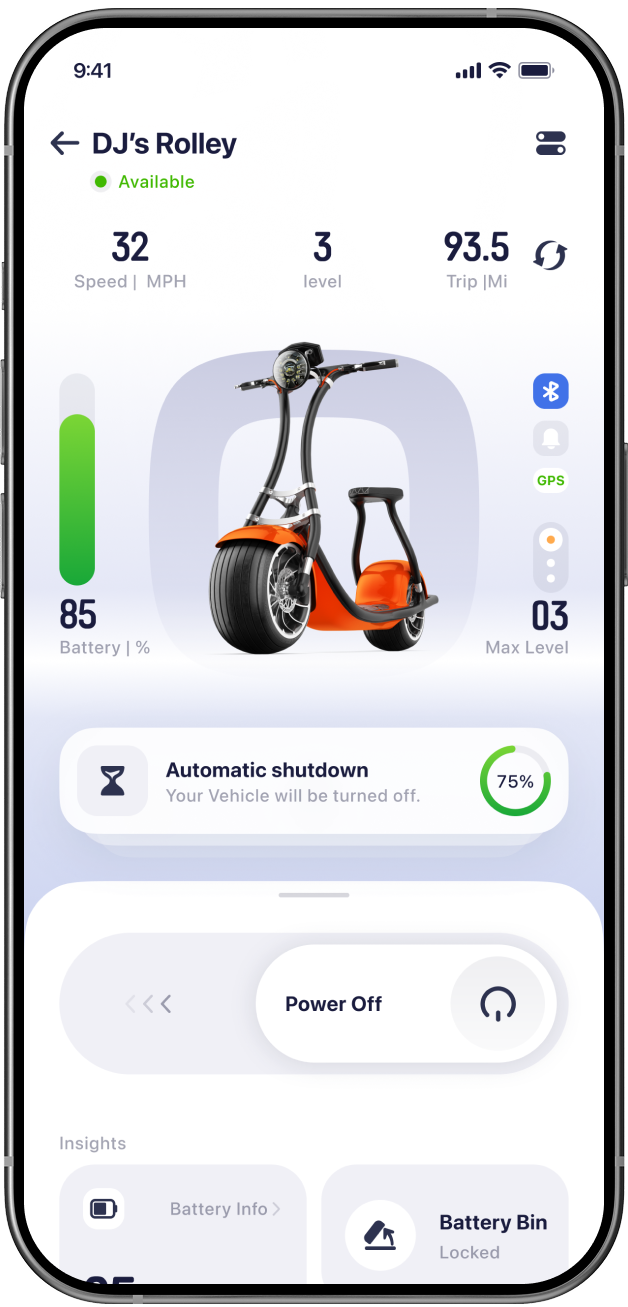 This app is designed to enhance the riding experience of the Rolley, an e-scooter manufactured by Scooterson. The goal is to ensure riders can effortlessly control and monitor scooters with just a few taps on their smartphone.