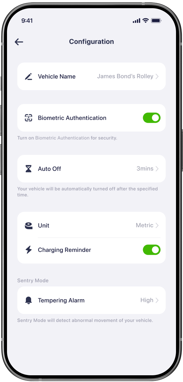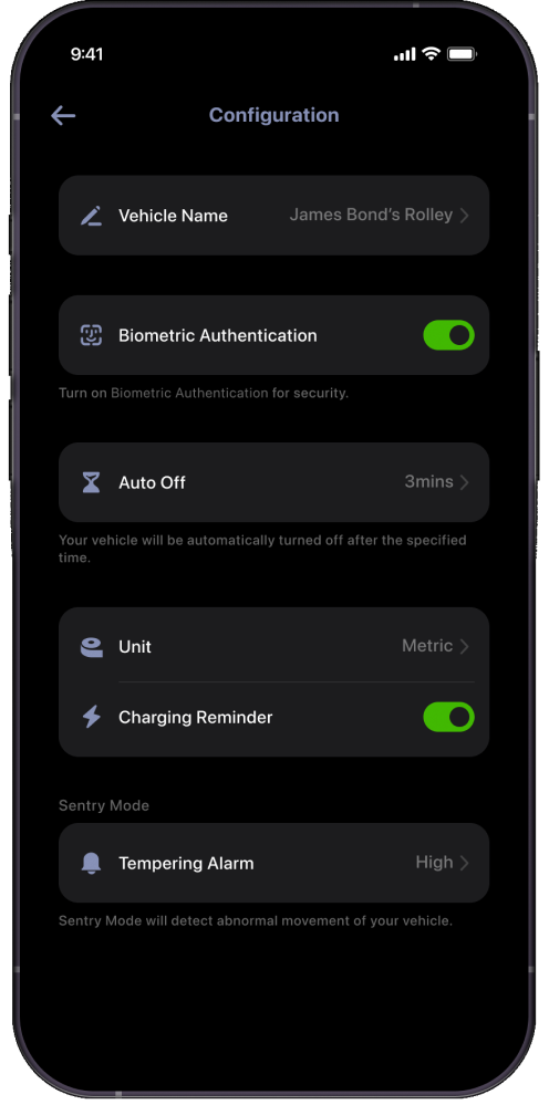 Users can customise their scooters according to personal preferences, including settings such as unit conversion, automatic shutdown, and more. This flexibility allows each user to tailor the vehicle's functionality to suit their individual needs.