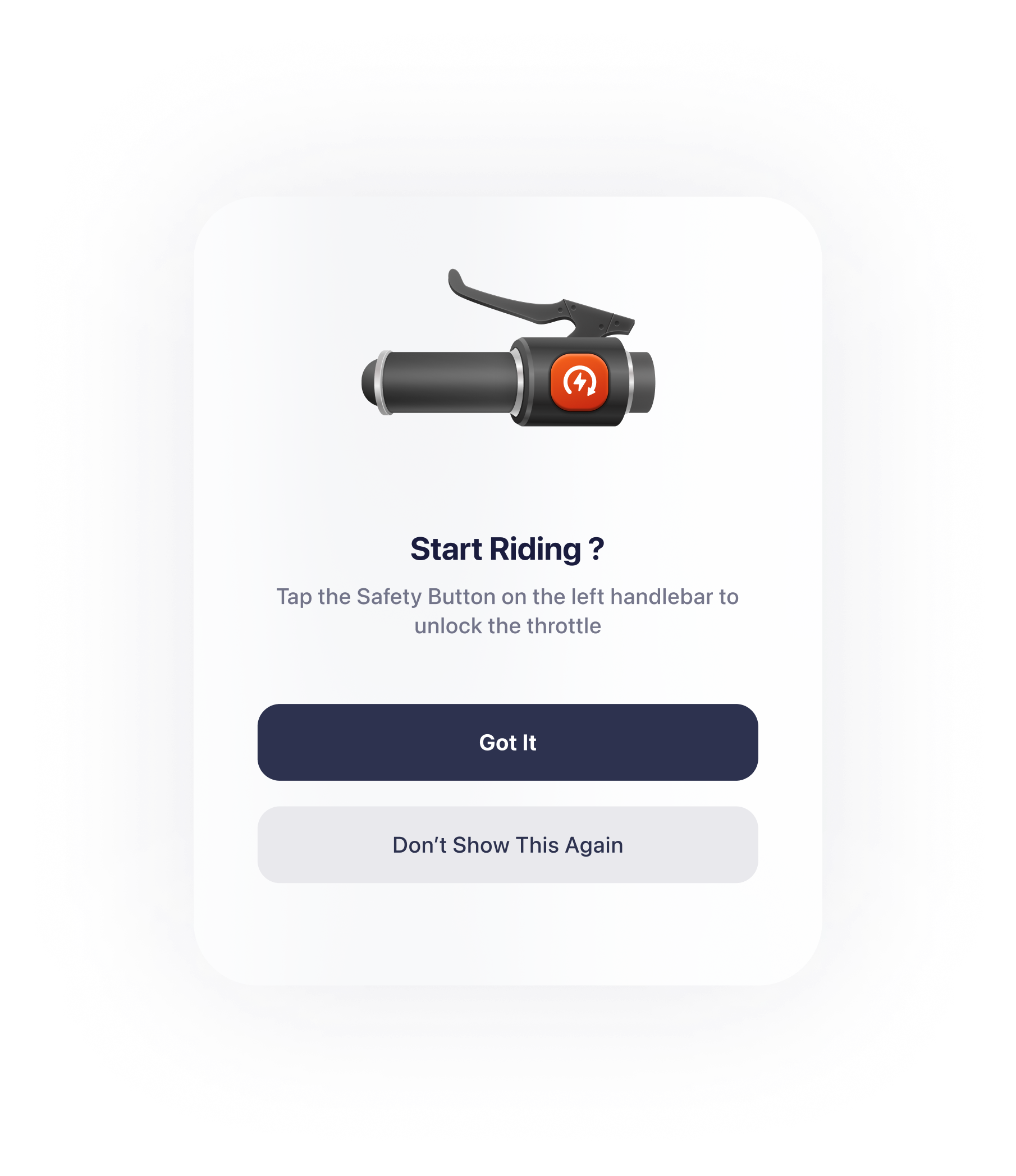 The centre stage will provide suggestions based on predictions of the user's current riding status. It has two purpose here:1.A predictive new action that a user might take;2.Immediate feedback to confirm a user's actions have been successfully executed.