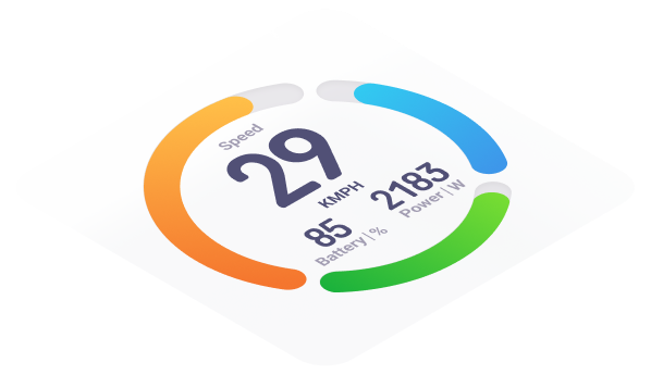 The Main Dial consists of three parts: speedometer, power indicator and battery capacity indicator.The circle was optimisied to add a slight gradient to mimic the natural light on objects, creating a vivid and dynamic effect